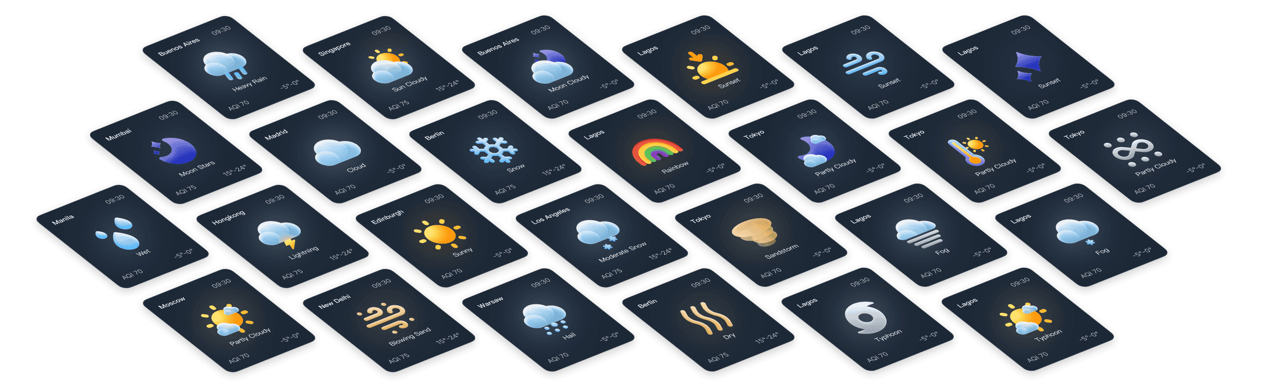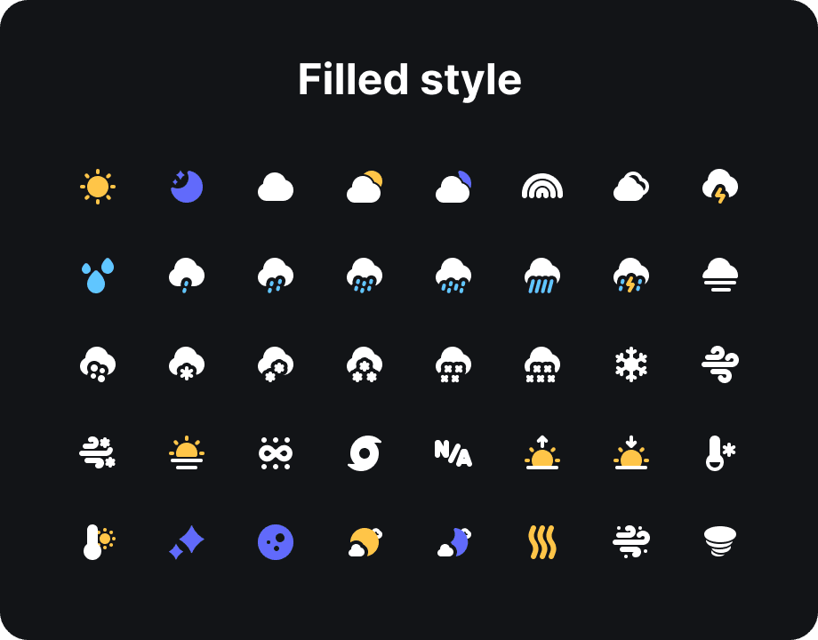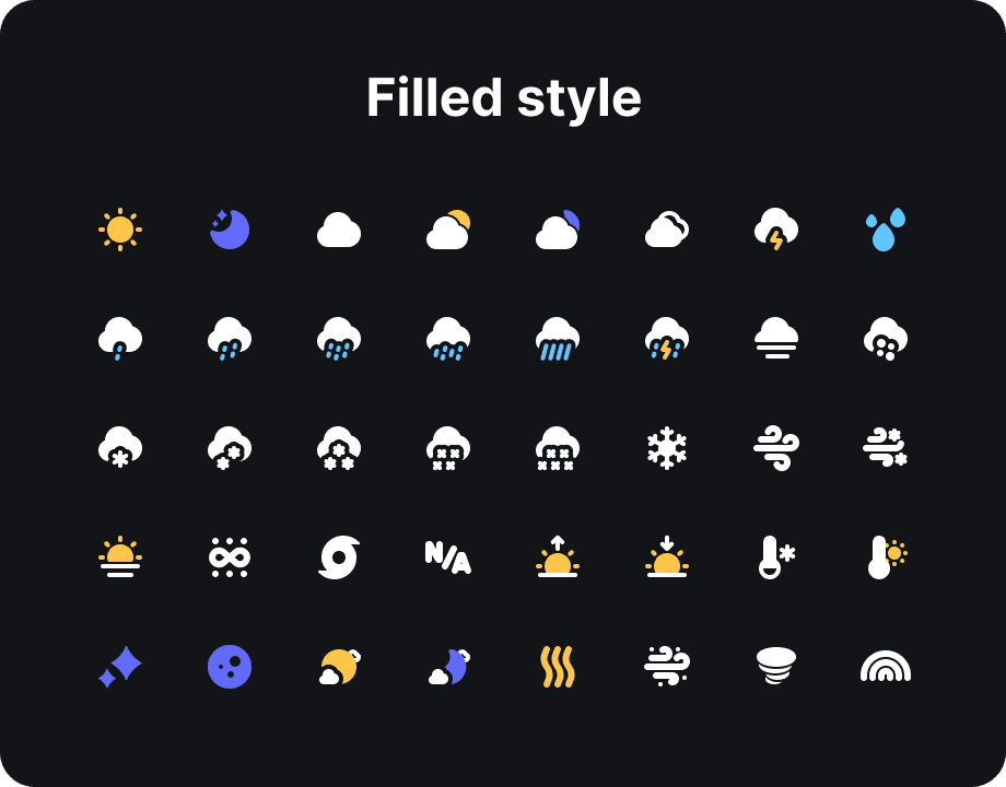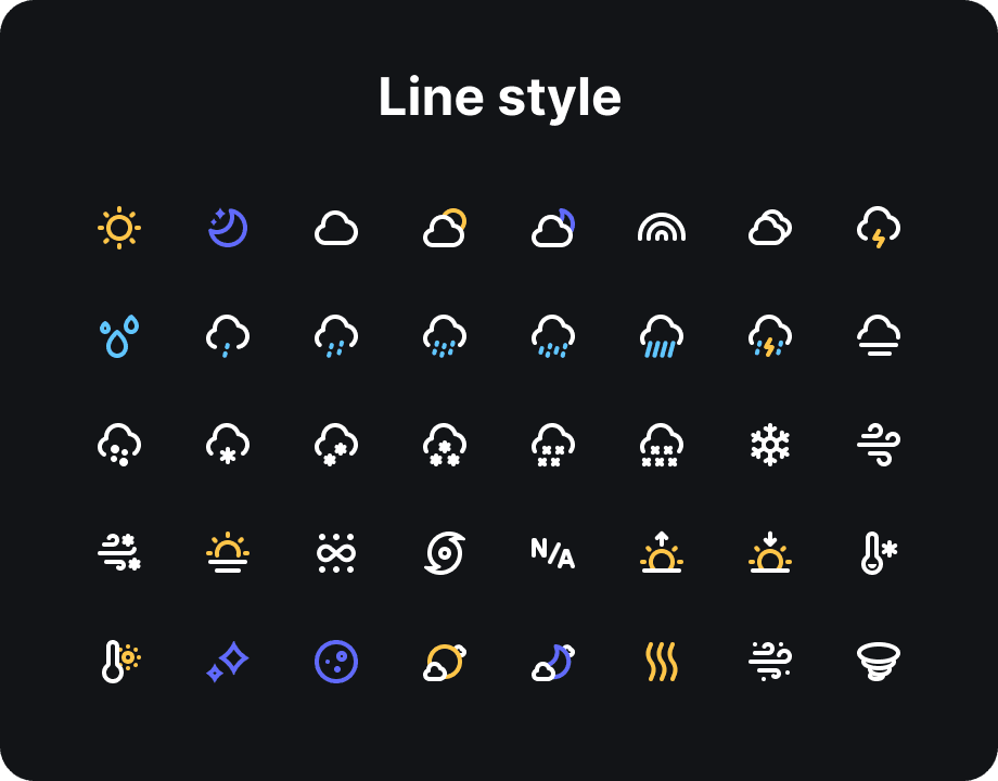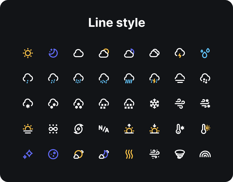 The weather icons adapt seamlessly to both dark and light modes, ensuring they look perfect in any interface.